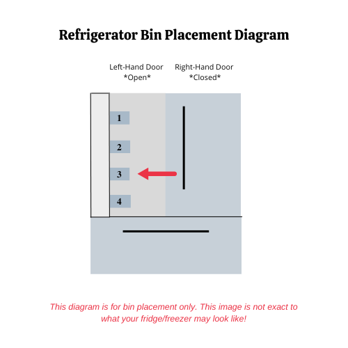 • When looking into the refrigerator, this bin is for the LEFT hand door and is for the 3rd bin position.
